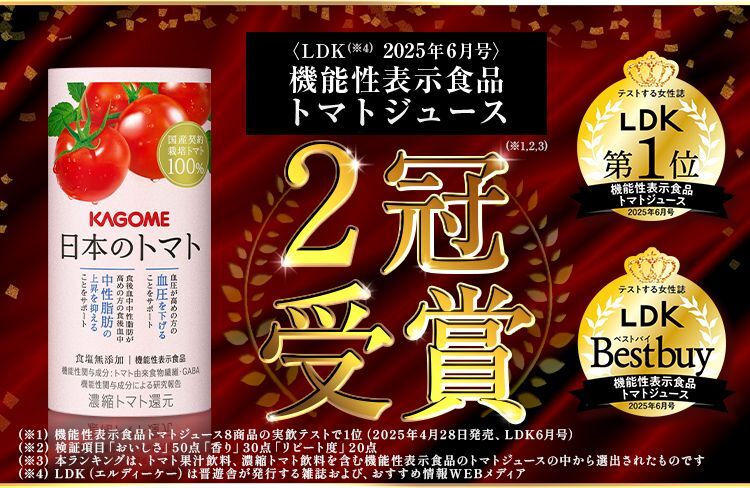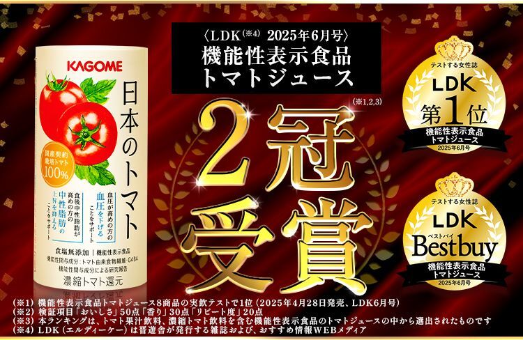機能性表示食品トマトジュース部門で2冠受賞(※1.2.3)しました。