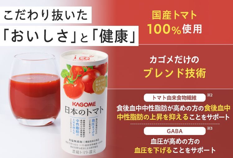 カゴメと農家だからこそできた、渾身のトマトジュース「日本のトマト」。アンケート回答後、1家族様1回限り、特別価格で購入可能。