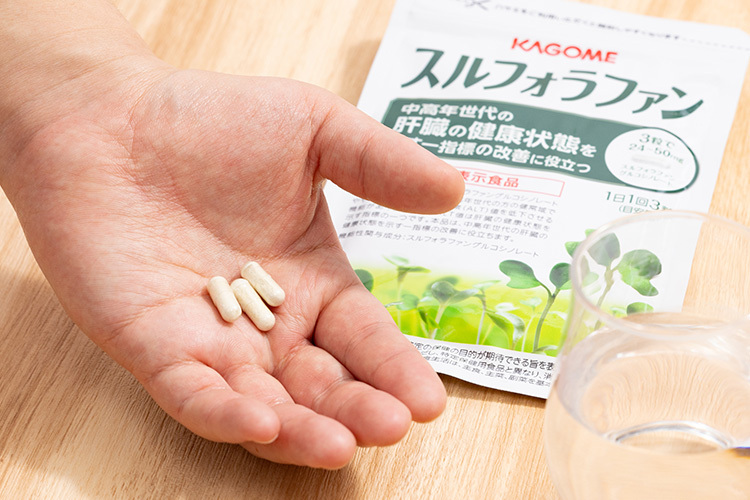 ※本品は、スルフォラファングルコシノレートが含まれるため、健康な中高年世代の方の健常域でやや高めの血中肝機能酵素(ALT)値を低下させる機能があります。 血中ALT値は肝臓の健康状態を示す指標の一つです。 本品は、中高年世代の肝臓の健康状態を示す一指標の改善に役立ちます。